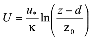 Leírható az érdességi magasság (z0) és a kiszorítási rétegvastagság (d) segítségével: