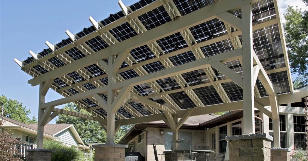 - terasz, loggia, erkély, előtető építése, melyhez szintén alkalmasak lehetnek a bifaciális napelemek,